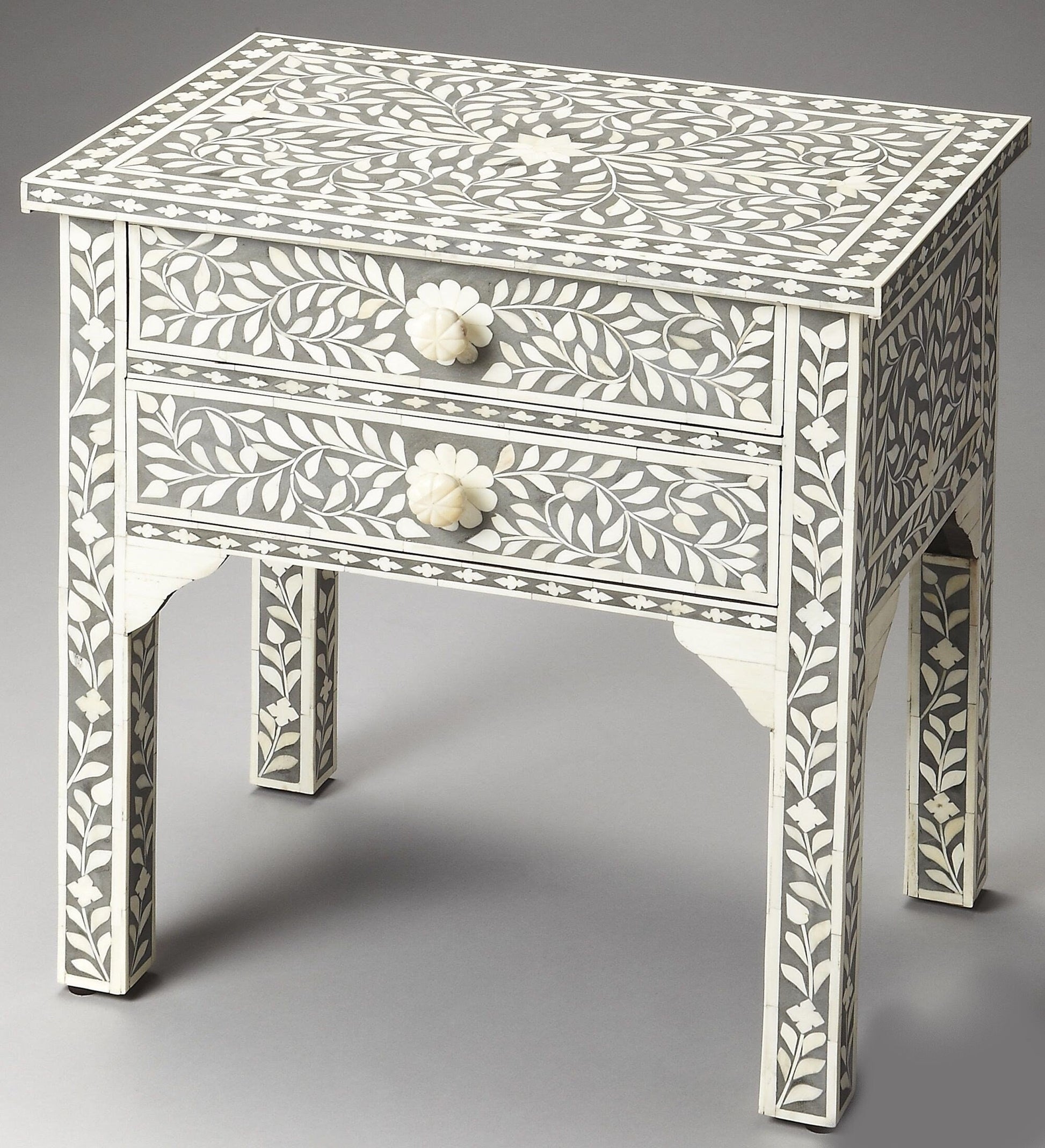 Handgefertigter Nachttisch/Nachttisch mit Knocheneinlage, Holzschublade, Heimdekoration