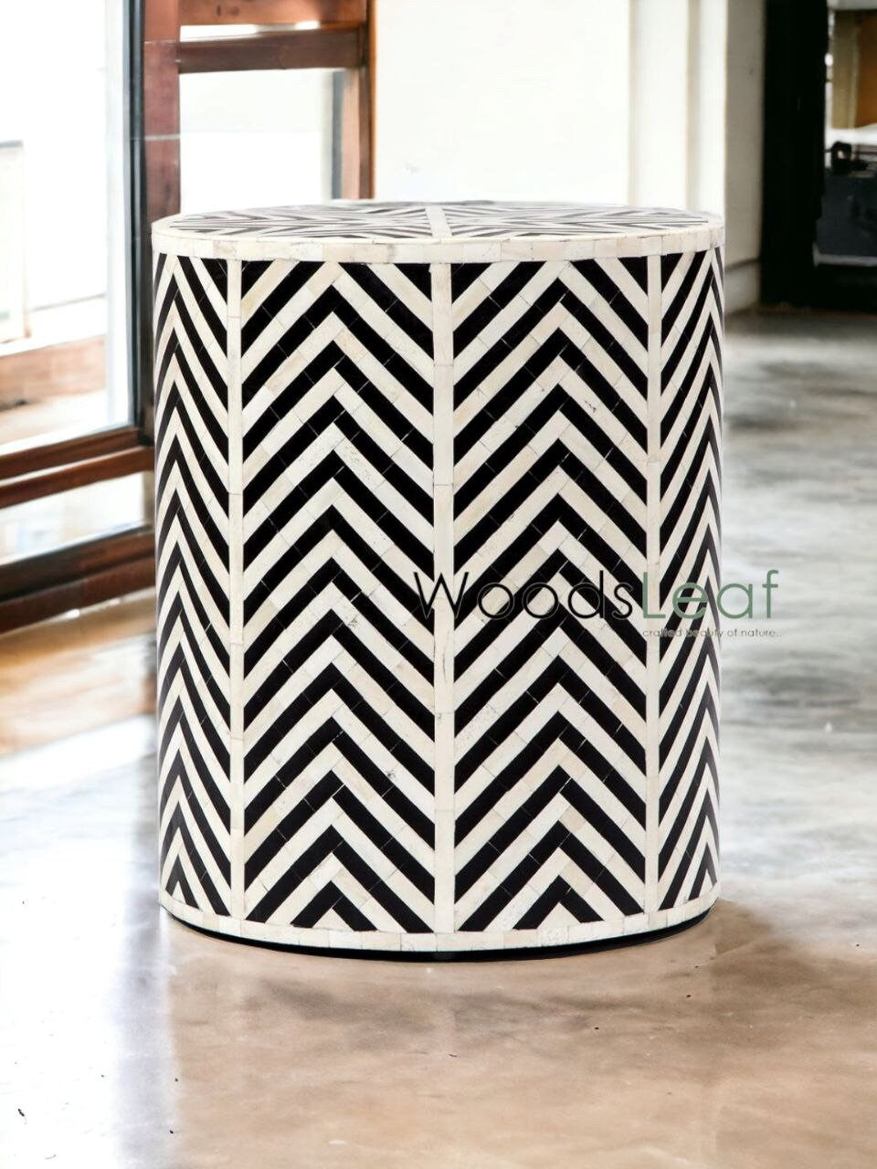 Handgefertigter Beistelltisch mit Knocheneinlage, Beistelltisch, Mitteltisch, Trommeltisch, Beistelltisch, Möbel mit Knocheneinlage, antike Möbel mit Knocheneinlage aus Holz,