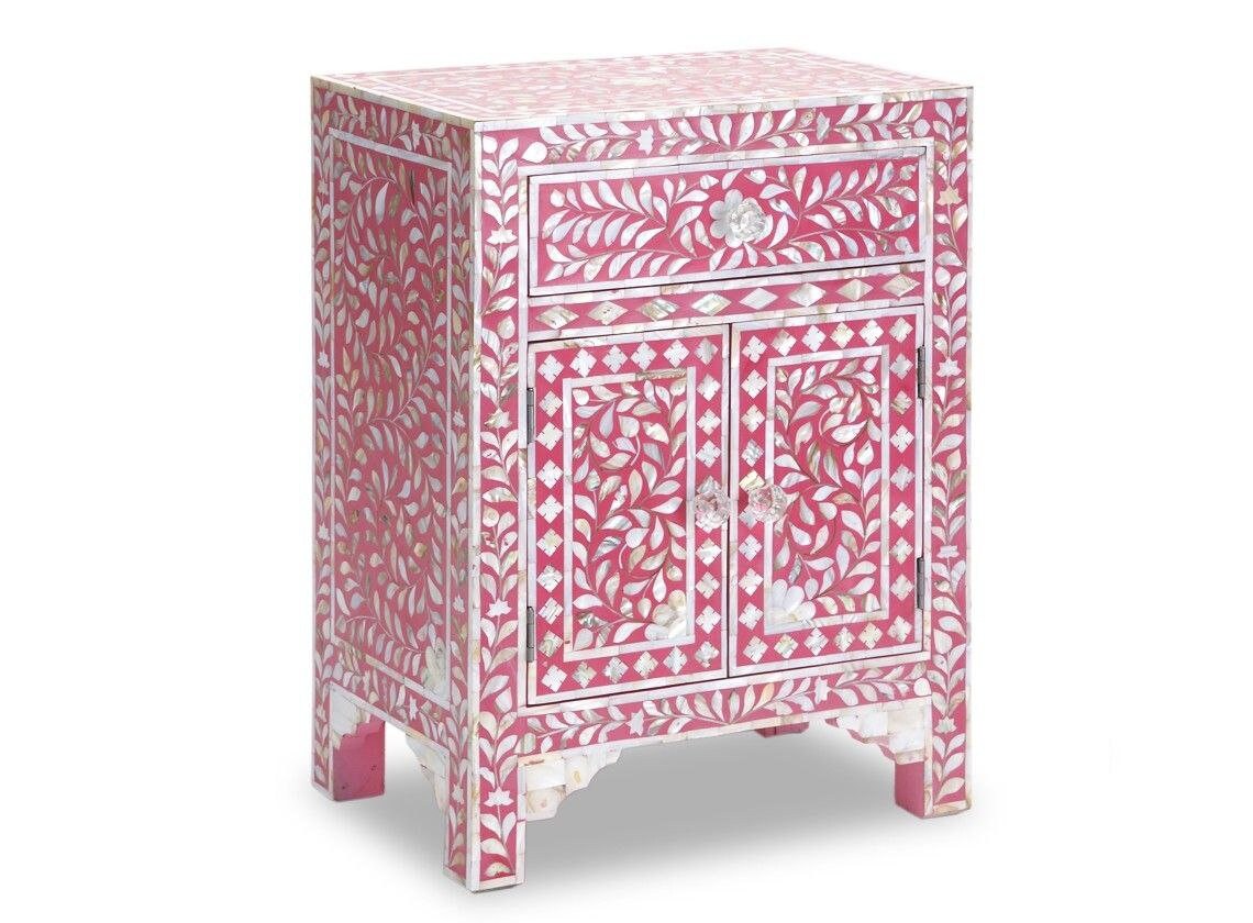 Handgefertigte Möbel, Bone Inlay Blumendesign Nachttisch, Bone Inlay Nachttisch, Bone Inlay Beistelltisch, Bone Inlay 1 Schubladen