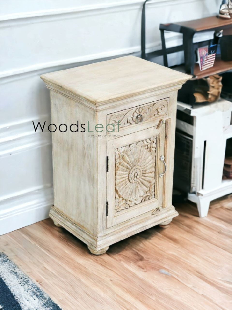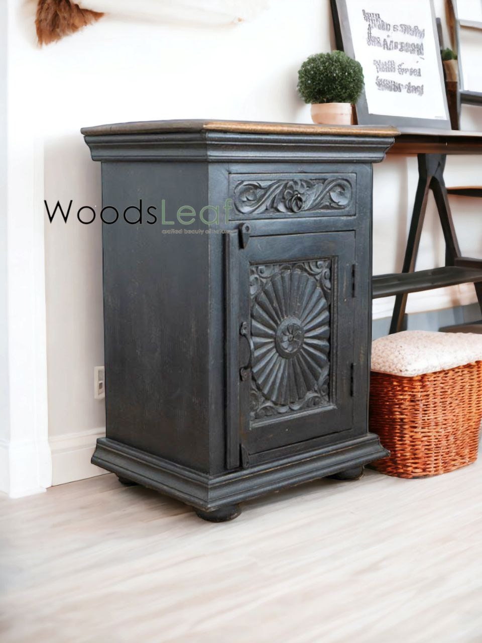 Présentation de notre magnifique chevet en bois de manguier sculpté à la main, un meuble intemporel qui allie savoir-faire traditionnel et fonctionnalités personnalisables. Fabriqué à partir de bois de manguier de haute qualité, ce chevet offre une durabilité exceptionnelle et une finition vieillie distinctive, ajoutant une touche de charme rustique à n'importe quel espace.