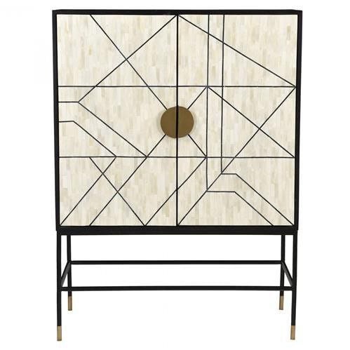 Armoire de bar à incrustation d'os noire, armoire de bar designe à incrustation d'os, console à incrustation d'os, meubles à incrustation d'os