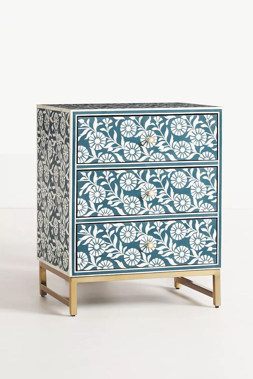 Cabinet d’entrée de conception de fleur d’incrustation d’os, table d’unité de médias de conception de fleur d’incrustation d’os, unité de stockage d’incrustation d’os