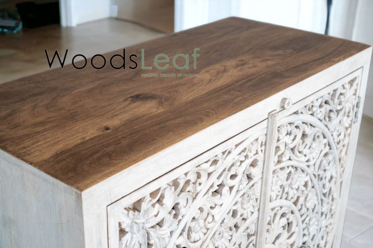 Présentation de notre exquis buffet en manguier sculpté à la main, un meuble intemporel qui allie savoir-faire traditionnel et fonctionnalités personnalisables. Fabriqué à partir de bois de manguier de haute qualité, ce buffet offre une durabilité exceptionnelle et une finition vieillie distinctive, ajoutant une touche de charme rustique à n'importe quel espace.