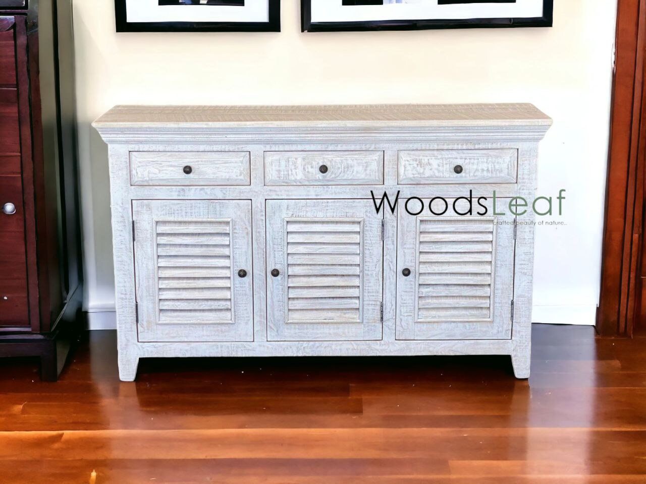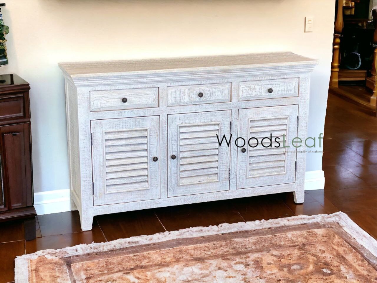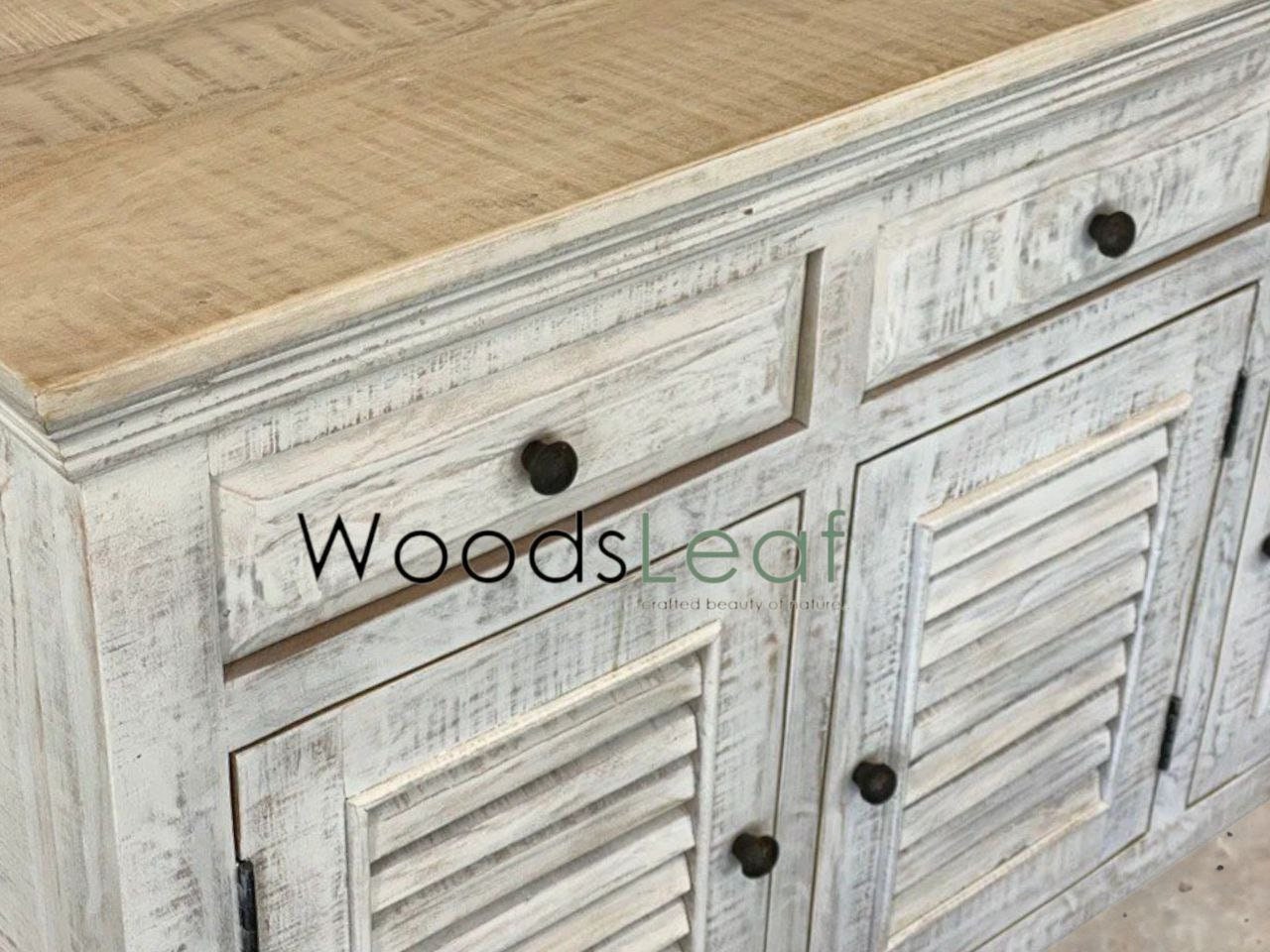 Présentation de notre exquis buffet en manguier sculpté à la main, un meuble intemporel qui allie savoir-faire traditionnel et fonctionnalités personnalisables. Fabriqué à partir de bois de manguier de haute qualité, ce buffet offre une durabilité exceptionnelle et une finition vieillie distinctive, ajoutant une touche de charme rustique à n'importe quel espace.