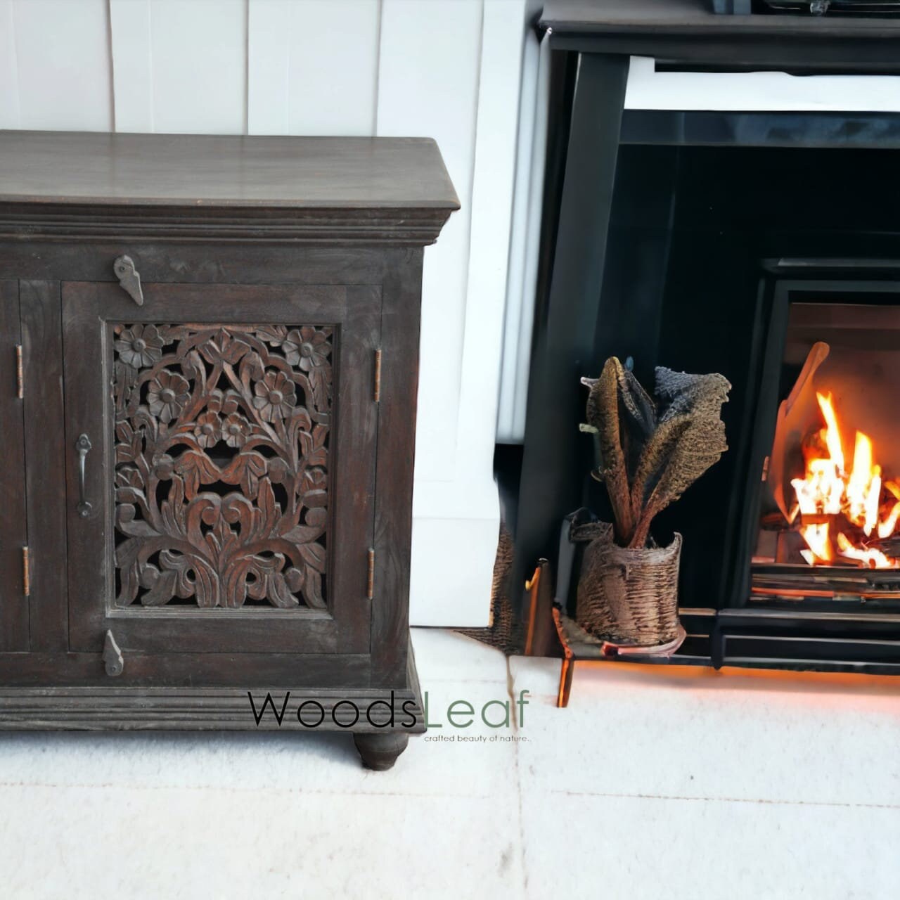 Présentation de notre exquis buffet en manguier sculpté à la main, un meuble intemporel qui allie savoir-faire traditionnel et fonctionnalités personnalisables. Fabriqué à partir de bois de manguier de haute qualité, ce buffet offre une durabilité exceptionnelle et une finition vieillie distinctive, ajoutant une touche de charme rustique à n'importe quel espace.