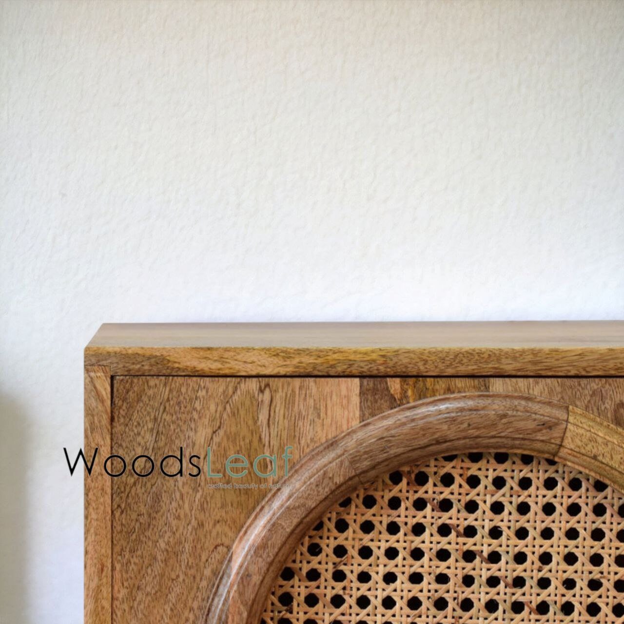 Table de chevet en canne naturelle faite à la main / Table de chevet / Porte en bois Décoration intérieure Bois de manguier Finition naturelle Meubles indiens