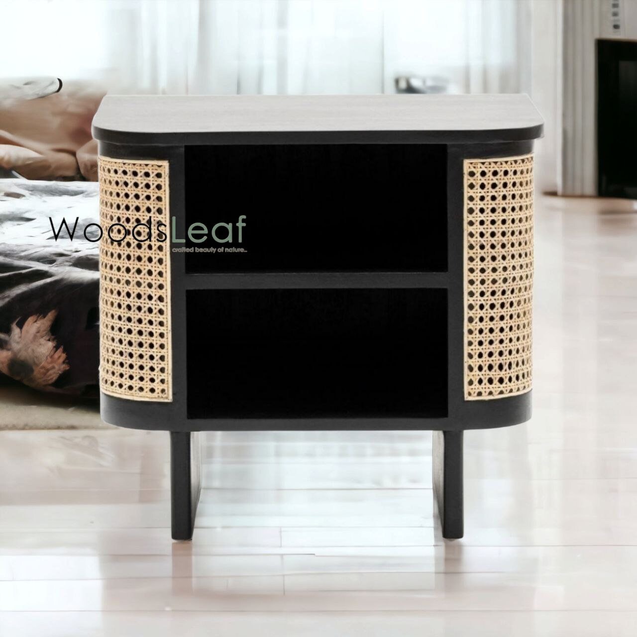 Table de chevet en canne naturelle faite à la main / Table de chevet / Tiroir en bois Décoration intérieure Bois de manguier Finition noire Meubles indiens