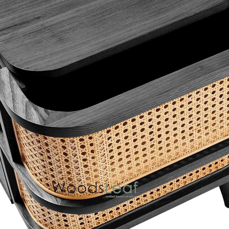 Table de chevet en canne naturelle faite à la main / Table de chevet / Tiroir en bois Décoration intérieure Bois de manguier Finition noire Meubles indiens
