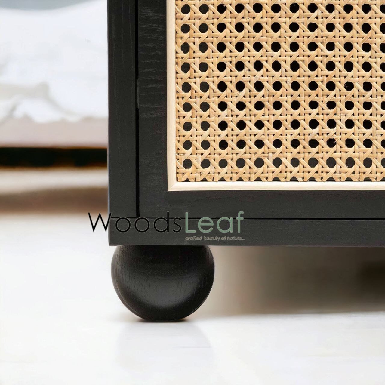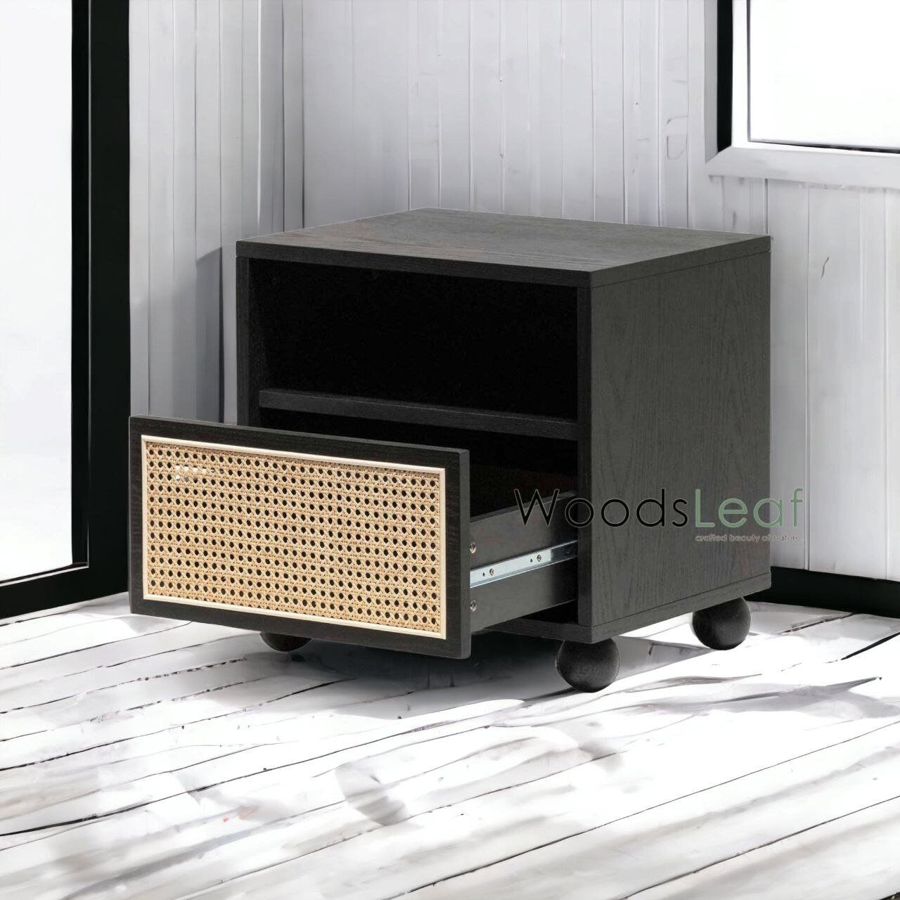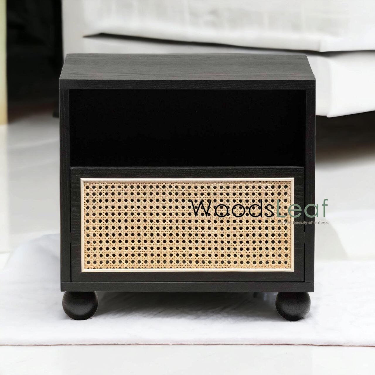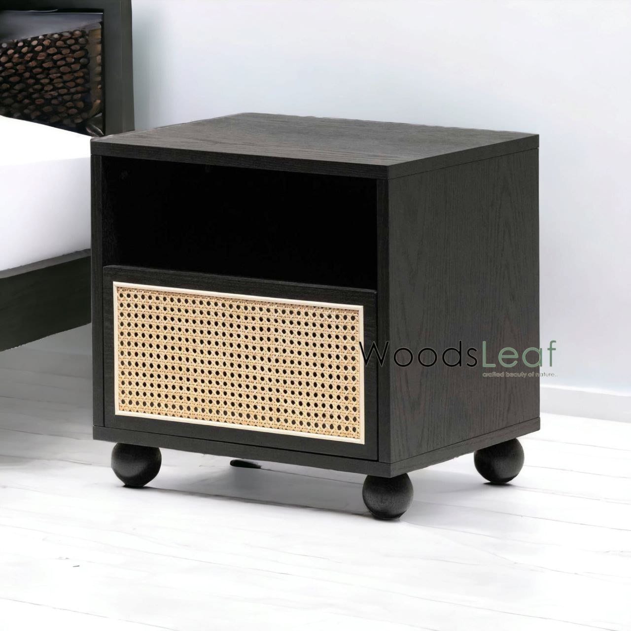 Table de chevet en canne naturelle faite à la main / Table de chevet / Tiroir en bois Décoration intérieure Bois de manguier Finition noire Meubles indiens