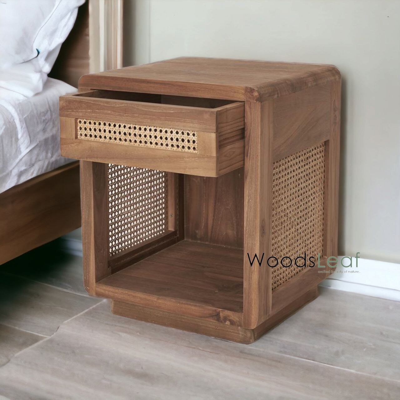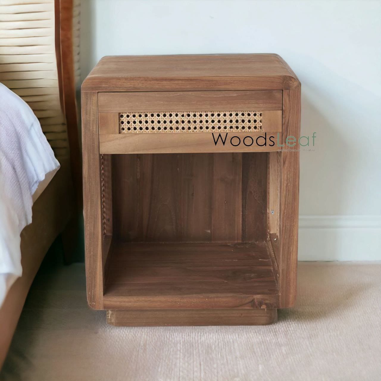 Table de chevet en canne naturelle faite à la main / Table de chevet / Tiroir en bois Décoration intérieure Bois de manguier Finition naturelle Meubles indiens