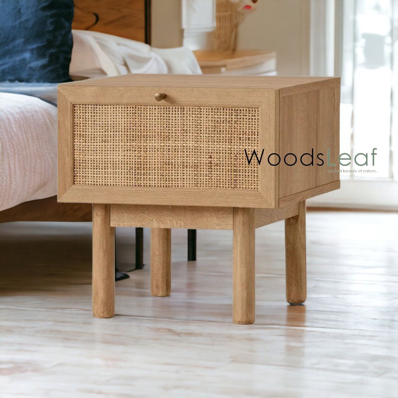 Table de chevet en canne naturelle faite à la main / Table de chevet / Tiroir en bois Décoration intérieure Bois de manguier Finition naturelle Meubles indiens