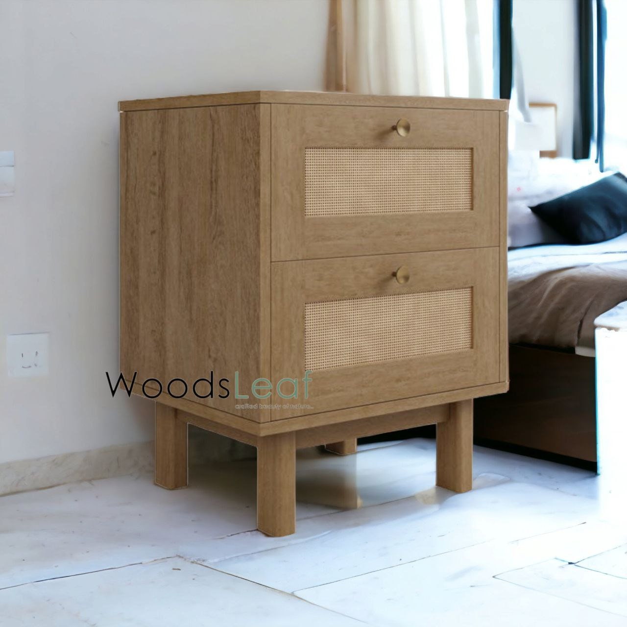Table de chevet en canne naturelle faite à la main / Table de chevet / Tiroir en bois Décoration intérieure Bois de manguier Finition naturelle Meubles indiens