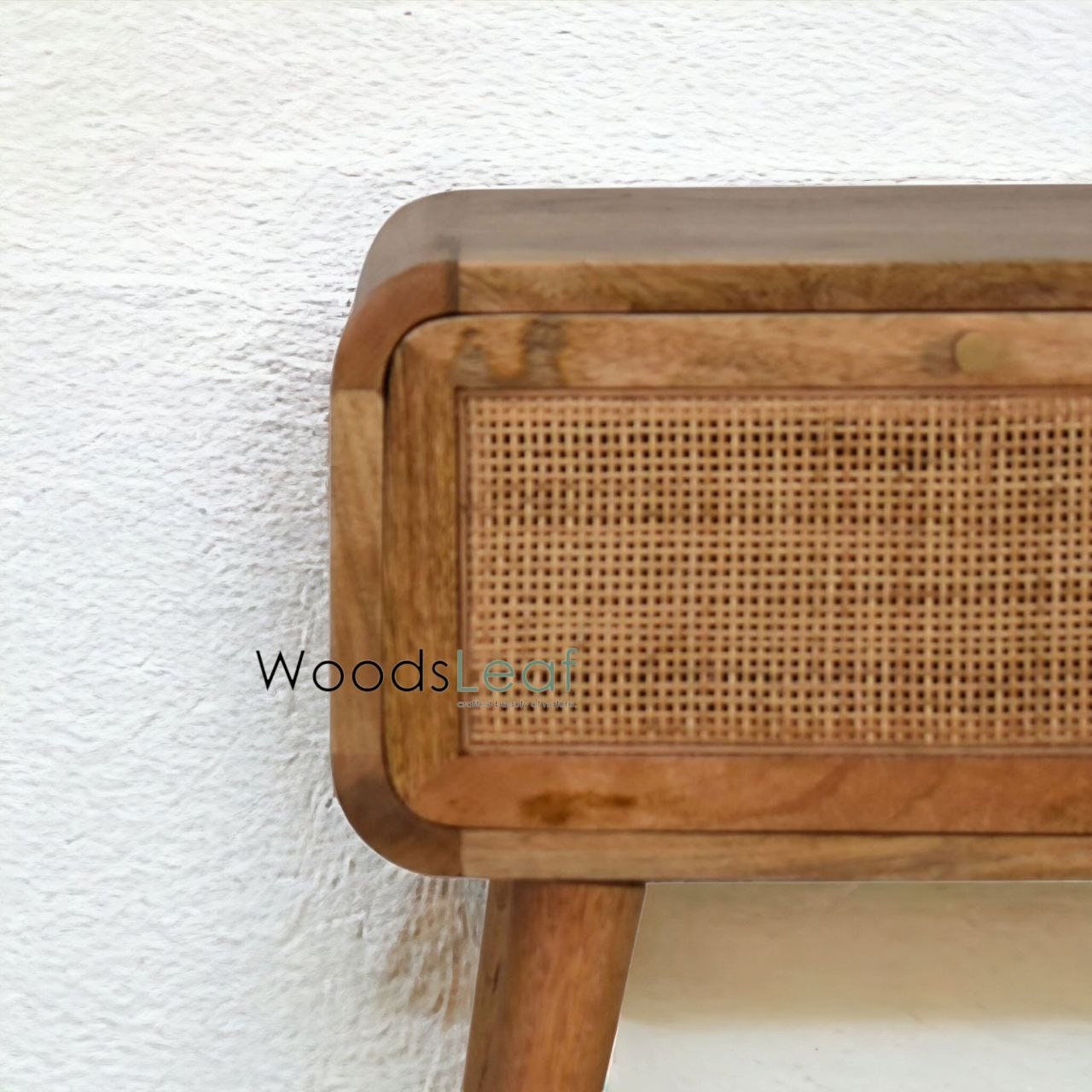 Table de chevet en canne naturelle faite à la main, tiroir en bois, décoration de maison, bois de manguier, finition naturelle, meubles indiens, table de chevet