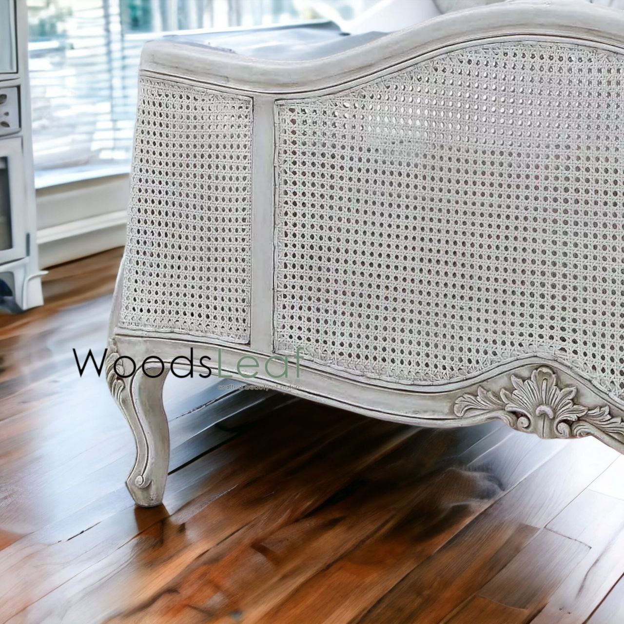 La finition vieillie de ce lit confère un charme rustique à votre espace de couchage, créant une atmosphère chaleureuse et invitante. Chaque lit est méticuleusement fabriqué par nos artisans qualifiés, garantissant qu'il n'y a pas deux pièces identiques. Soyez assuré que vous posséderez un lit vraiment exceptionnel et exclusif qui met en valeur la beauté du bois naturel et le talent artistique de la sculpture à la main.