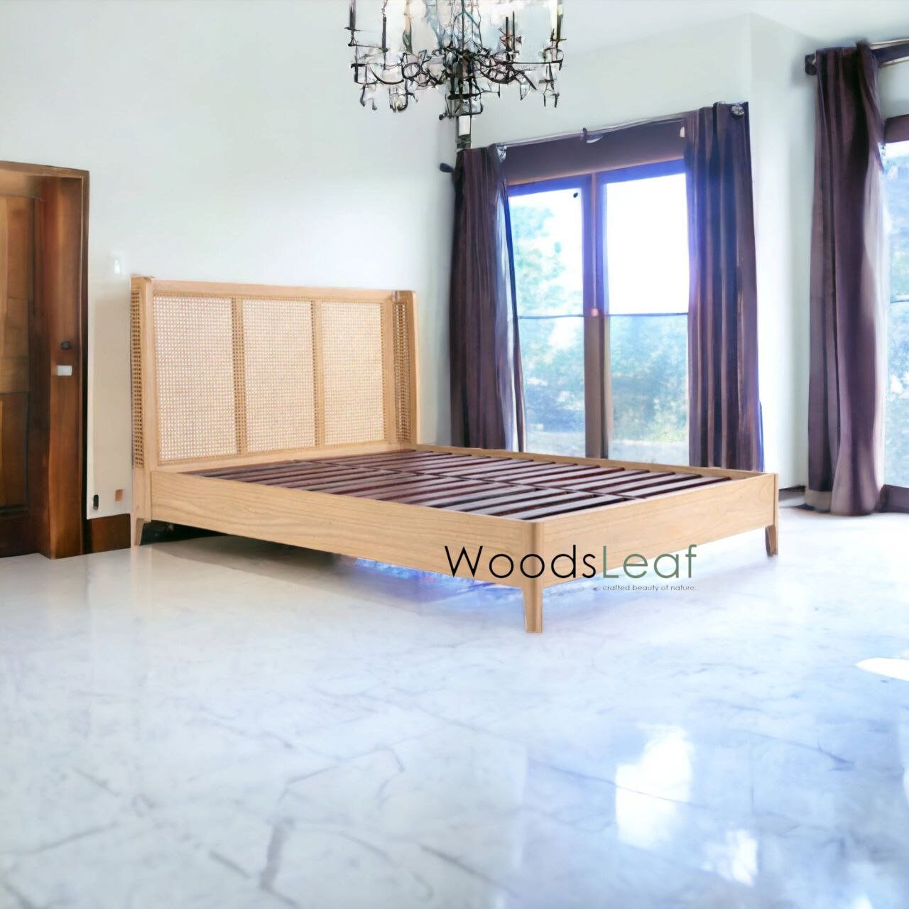 Lit en bois massif de canne naturelle fait à la main, lit de décoration intérieure en bois d'extrémité de rotin naturel, meubles de chambre à coucher pour la décoration intérieure