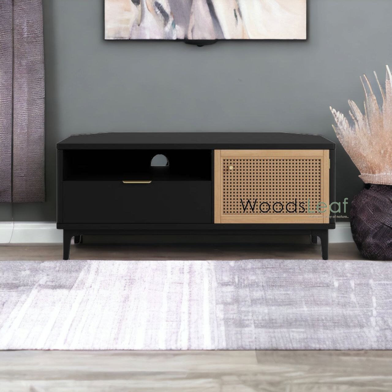 Console de télévision en canne naturelle faite à la main, porte en bois, décoration intérieure en bois de manguier, finition naturelle, meubles indiens/Tvc/unité TV