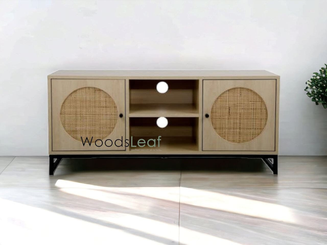 Console de télévision en canne naturelle faite à la main, porte en bois, décoration intérieure en bois de manguier, finition naturelle, meubles indiens/Tvc/unité TV