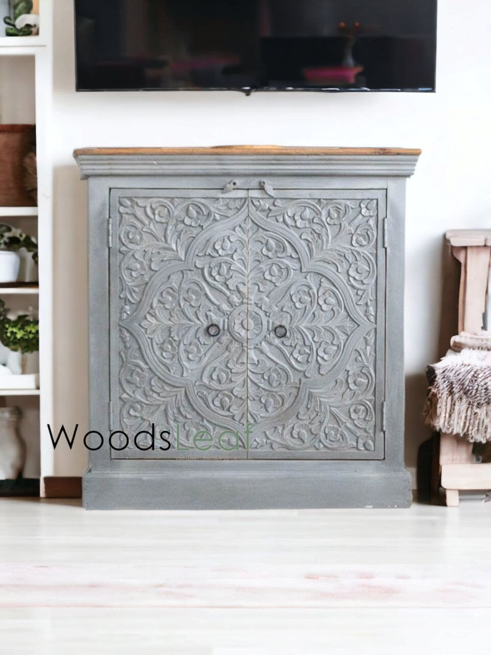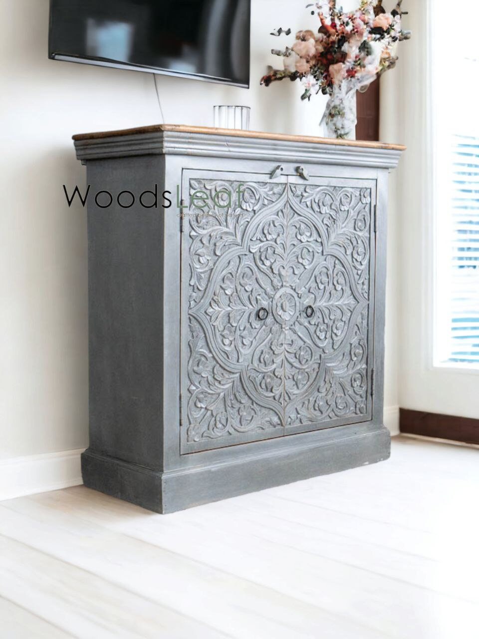 Présentation de notre exquis buffet en manguier sculpté à la main, un meuble intemporel qui allie savoir-faire traditionnel et fonctionnalités personnalisables. Fabriqué à partir de bois de manguier de haute qualité, ce buffet offre une durabilité exceptionnelle et une finition vieillie distinctive, ajoutant une touche de charme rustique à n'importe quel espace.