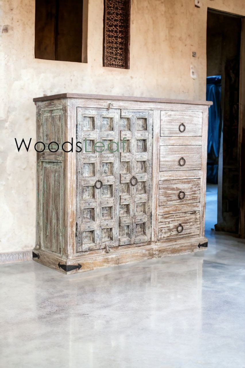 Finition en bois massif indien en détresse, meubles de chambre à coucher de salon, grand buffet, buffet en bois fait à la main, unités de rangement d'armoire