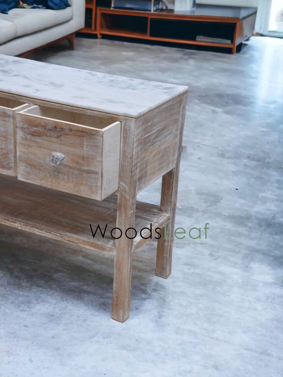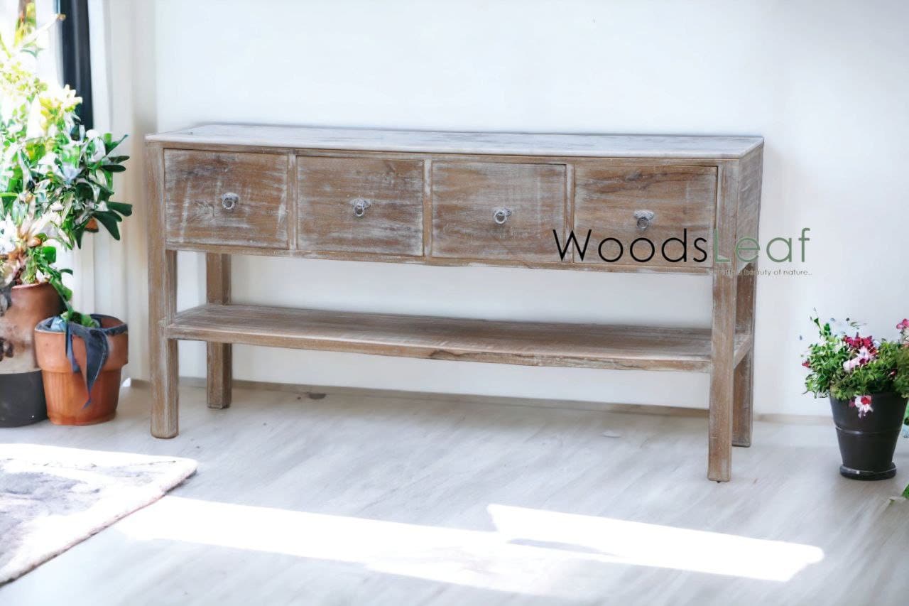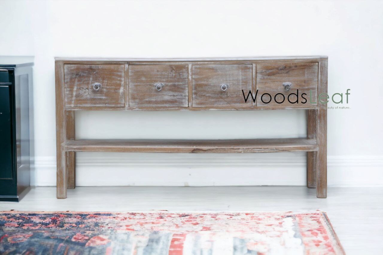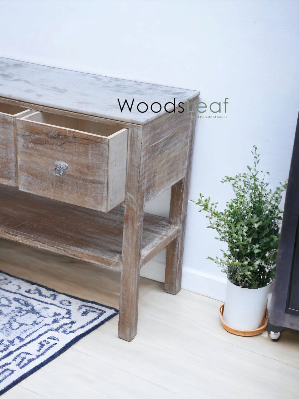 Présentation de notre exquise table console en manguier sculpté à la main, un meuble intemporel qui combine l'artisanat traditionnel avec des fonctionnalités personnalisables. Fabriquée à partir de bois de manguier de haute qualité, cette table console offre une durabilité exceptionnelle et une finition vieillie distinctive, ajoutant une touche de charme rustique à n'importe quel espace.