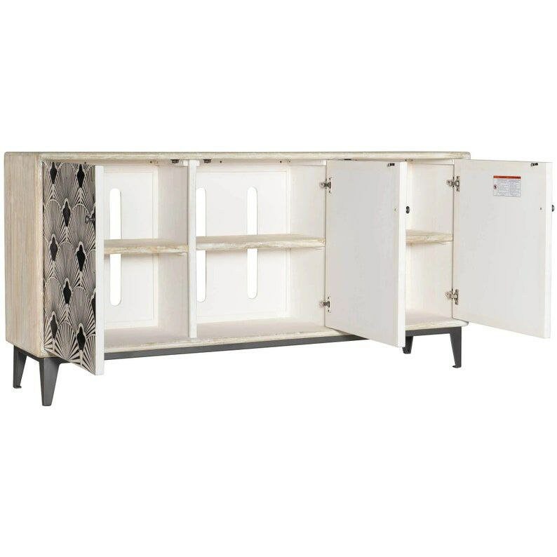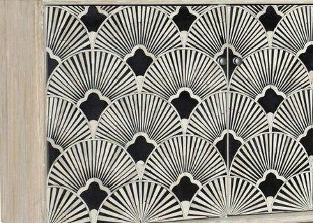 - Decorative Element: The bone inlay design on the doors serves as a decorative focal point, enhancing the aesthetic appeal of the cabinet.