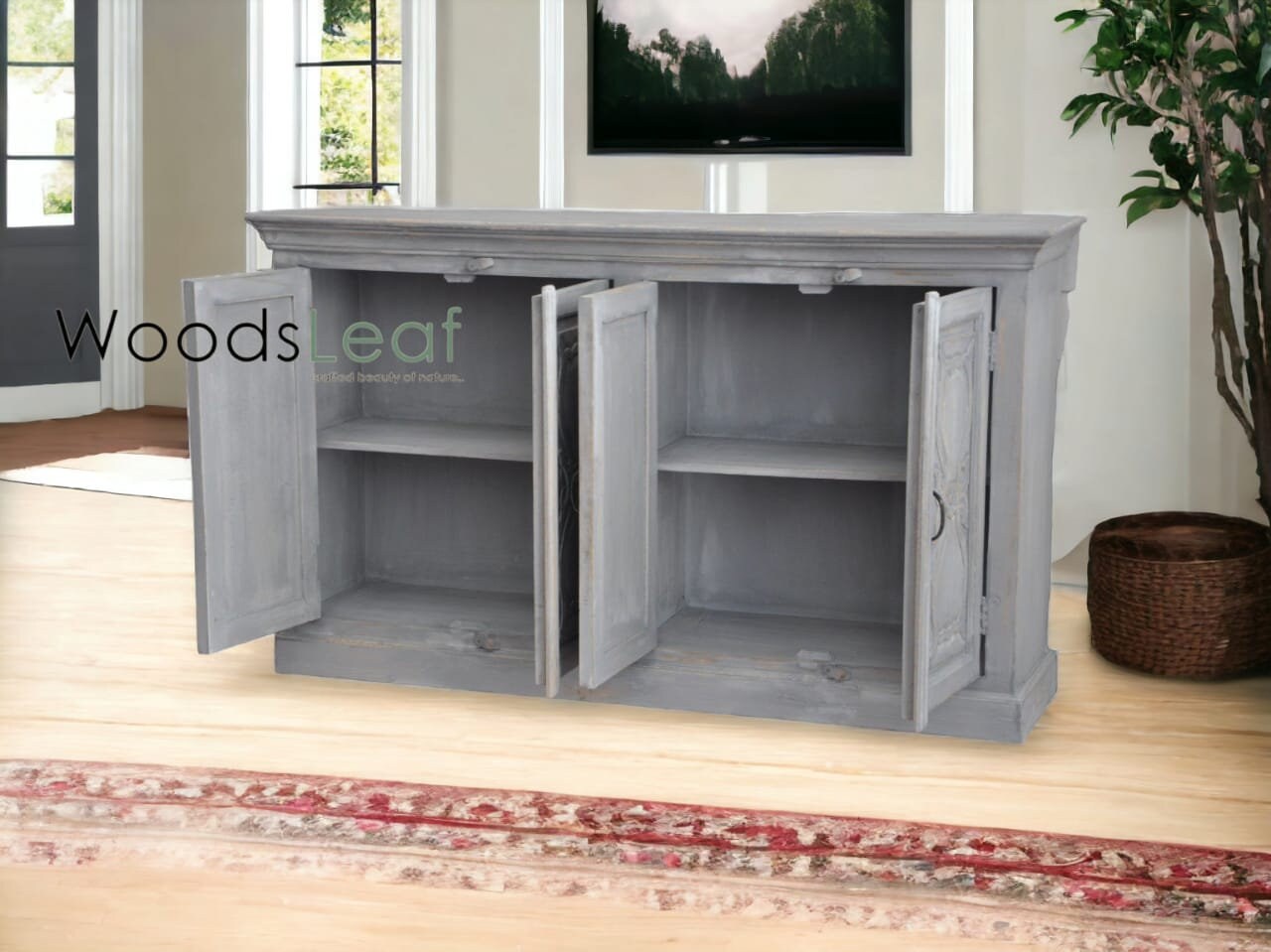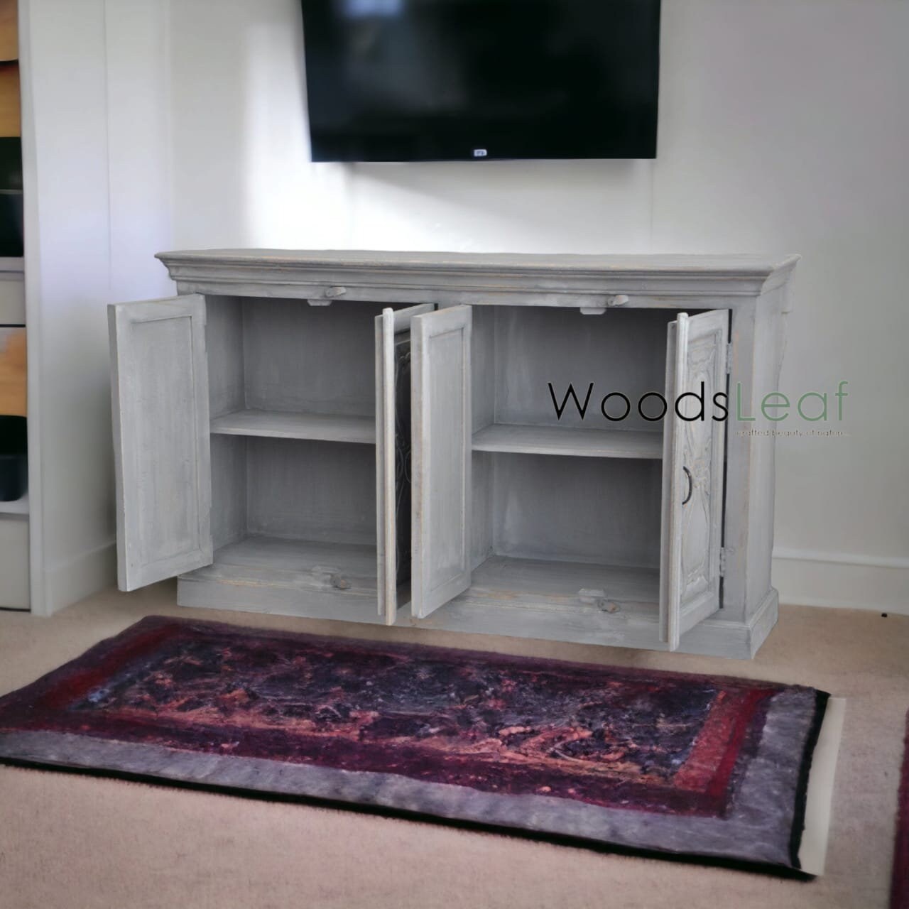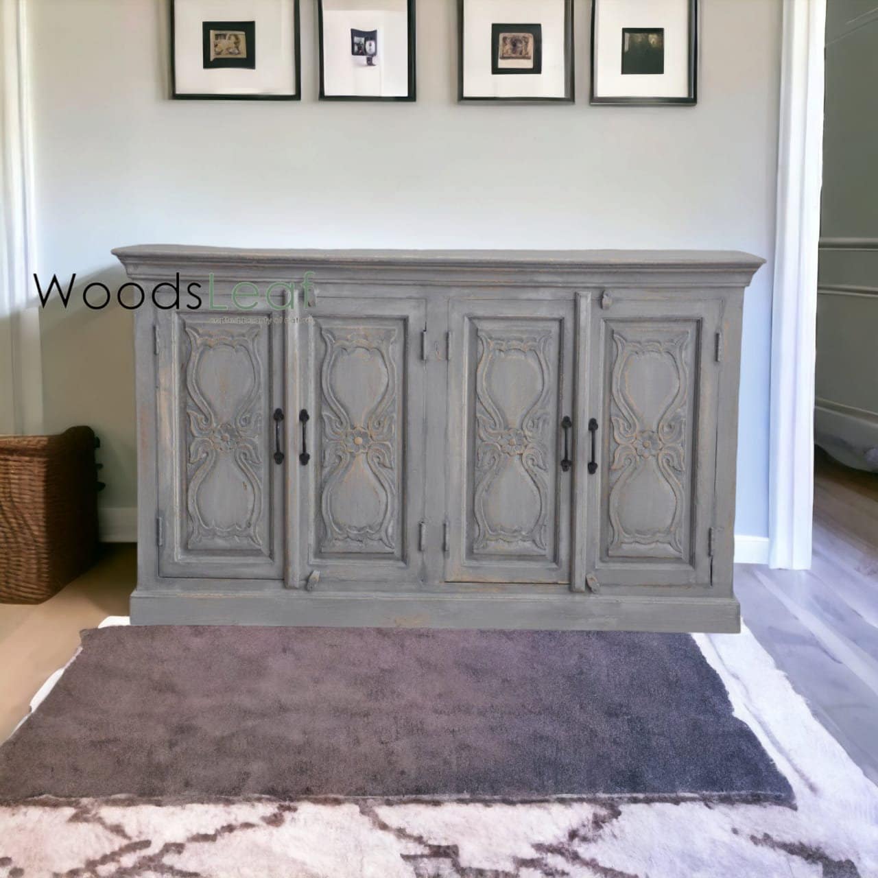 Hand-Carved Design: Each inch of this cabinet showcases intricate hand-carved designs, reflecting a blend of traditional artistry and modern functionality. The meticulous carving adds depth and texture, making it a captivating focal point.