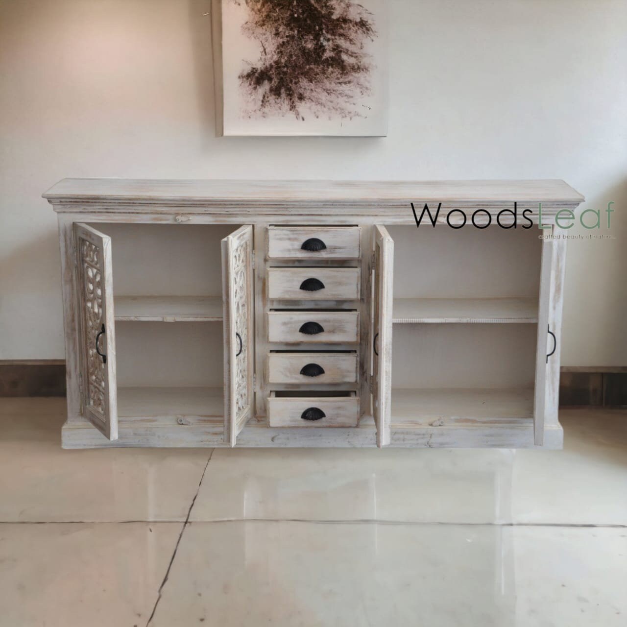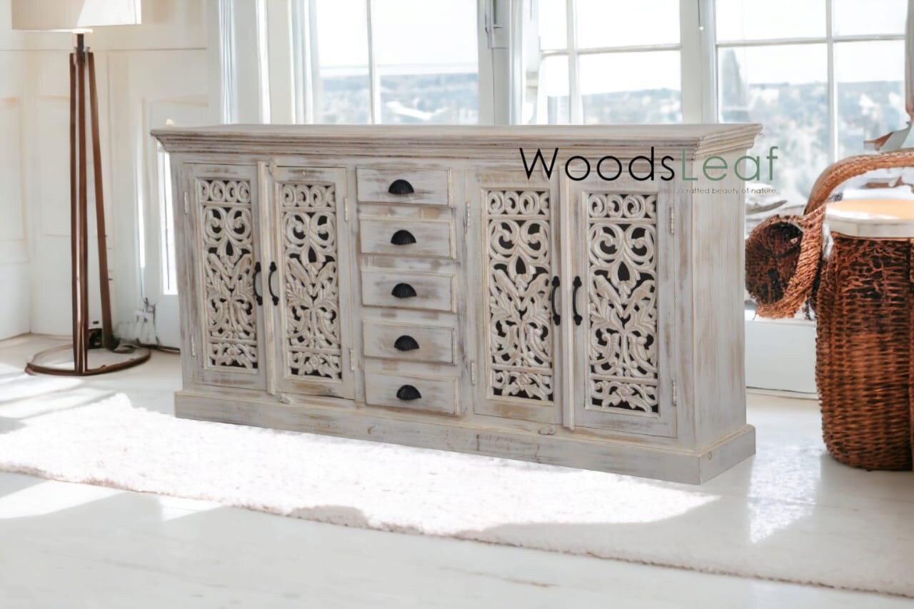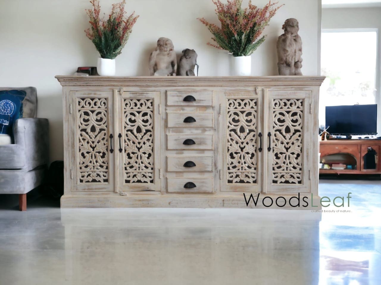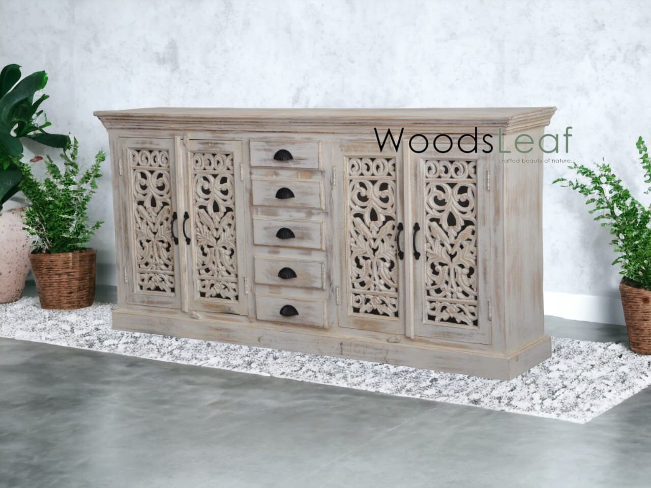 Spacious Storage: Behind the four beautifully carved doors lies ample storage space, allowing you to organize and store your essentials in style. Whether used in the living room, dining area, or bedroom, this cabinet offers functionality without compromising on design.