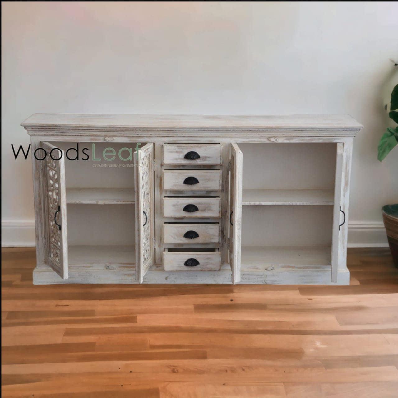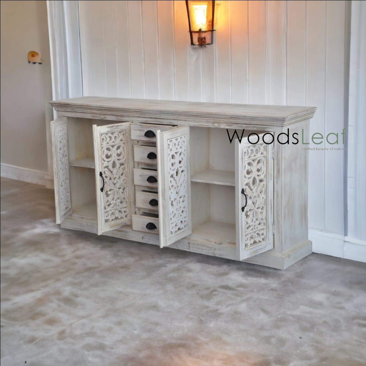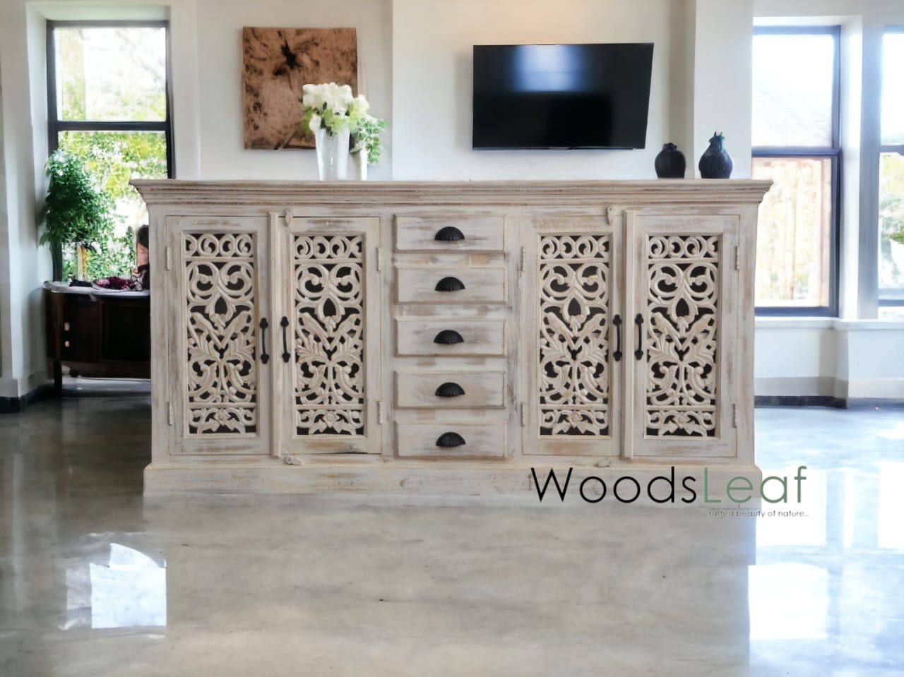 Spacious Storage: Behind the four beautifully carved doors lies ample storage space, allowing you to organize and store your essentials in style. Whether used in the living room, dining area, or bedroom, this cabinet offers functionality without compromising on design.