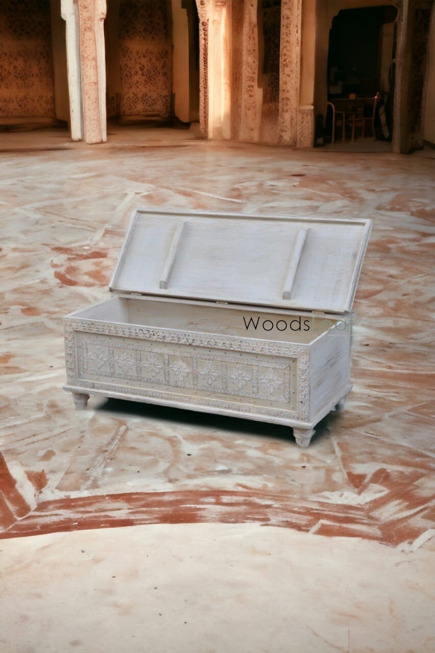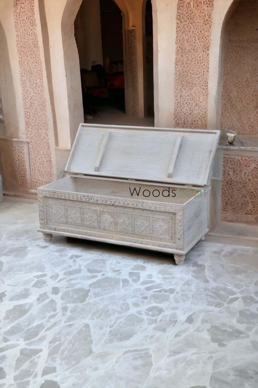 Hand Carved Design: Hand-carved detailing adds a unique and artisanal touch to the trunk. This craftsmanship can make each piece one-of-a-kind, showcasing the skill and artistry of the craftspeople involved.