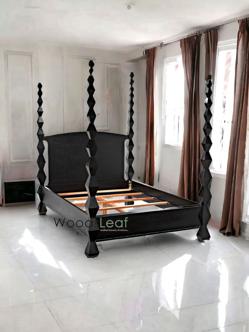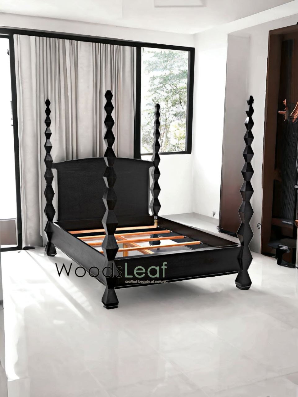 Unique Four Poster Design: Unlike traditional 4 poster beds, each post on this bed showcases a unique design, creating a captivating visual appeal. Whether it's intricate carvings, modern geometric shapes, or a blend of both, these posters stand as artistic statements.
