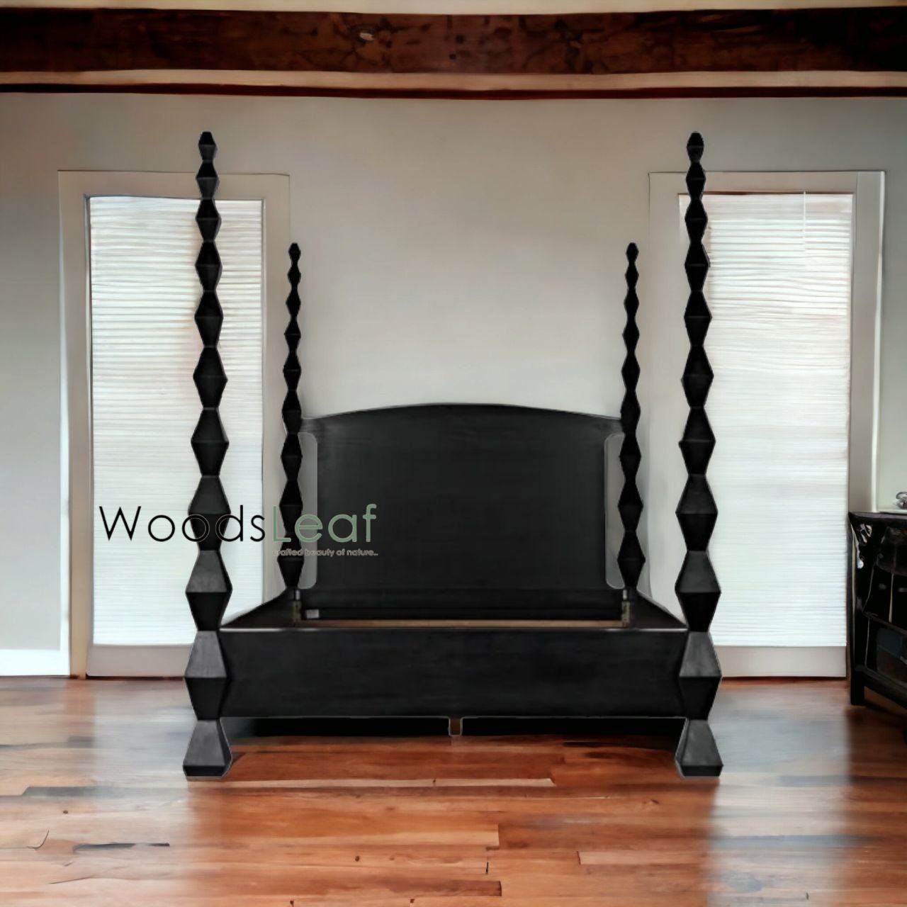 Solid Mango Wood 4 Poster Bed with Unique Black Finish