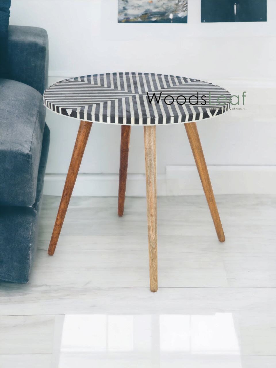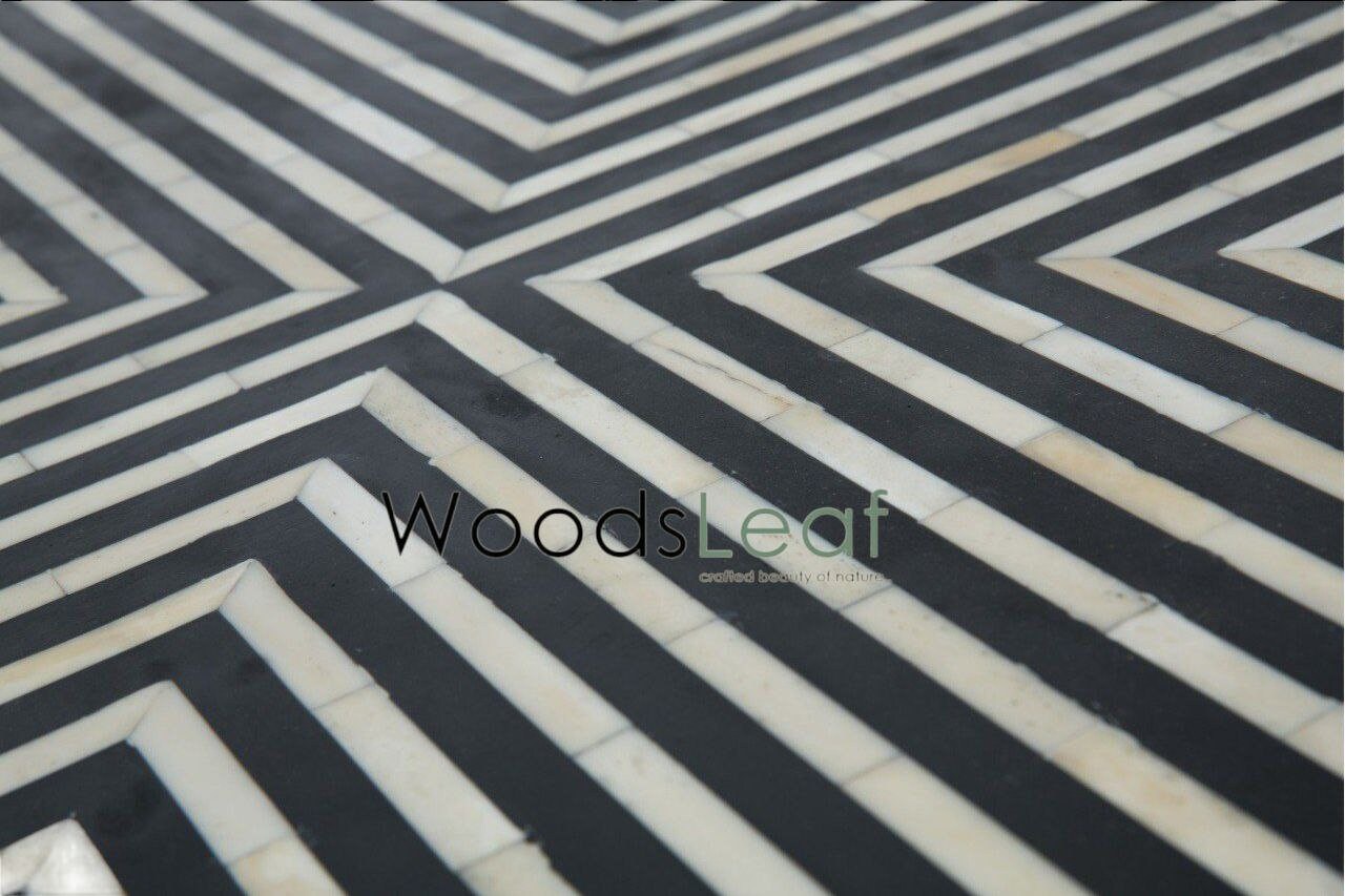 In summary, the Bone Inlay Side Table with its MDF top featuring bone inlay design and black resin finish, supported by solid mango wood legs, is a harmonious blend of style and substance. It promises to be a captivating addition to any space, combining intricate design details with quality materials.