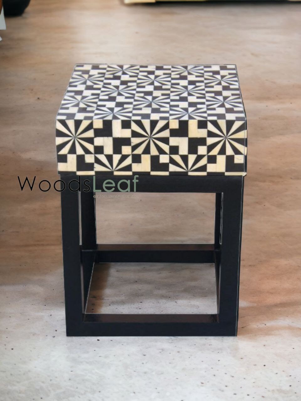 This detailed description should provide a clear picture of the bone inlay bedside table you've described. If you have any specific requirements or additional details, feel free to let me know!