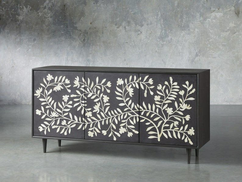 Overall, a bone inlay sideboard made from MDF with a black resin finish sounds like a stunning and functional piece that would add elegance and style to any interior setting.