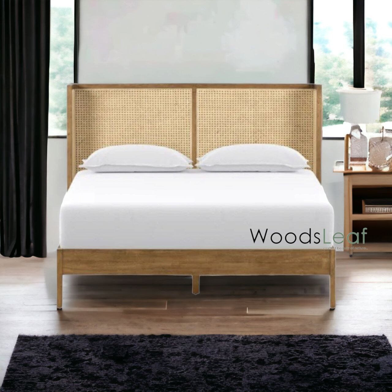 Natural Rattan Headboard: Rattan is a natural material that comes from the outer skin of climbing palms. It's lightweight, flexible, and durable. A headboard made of natural rattan can add a touch of warmth and texture to the bed's design.