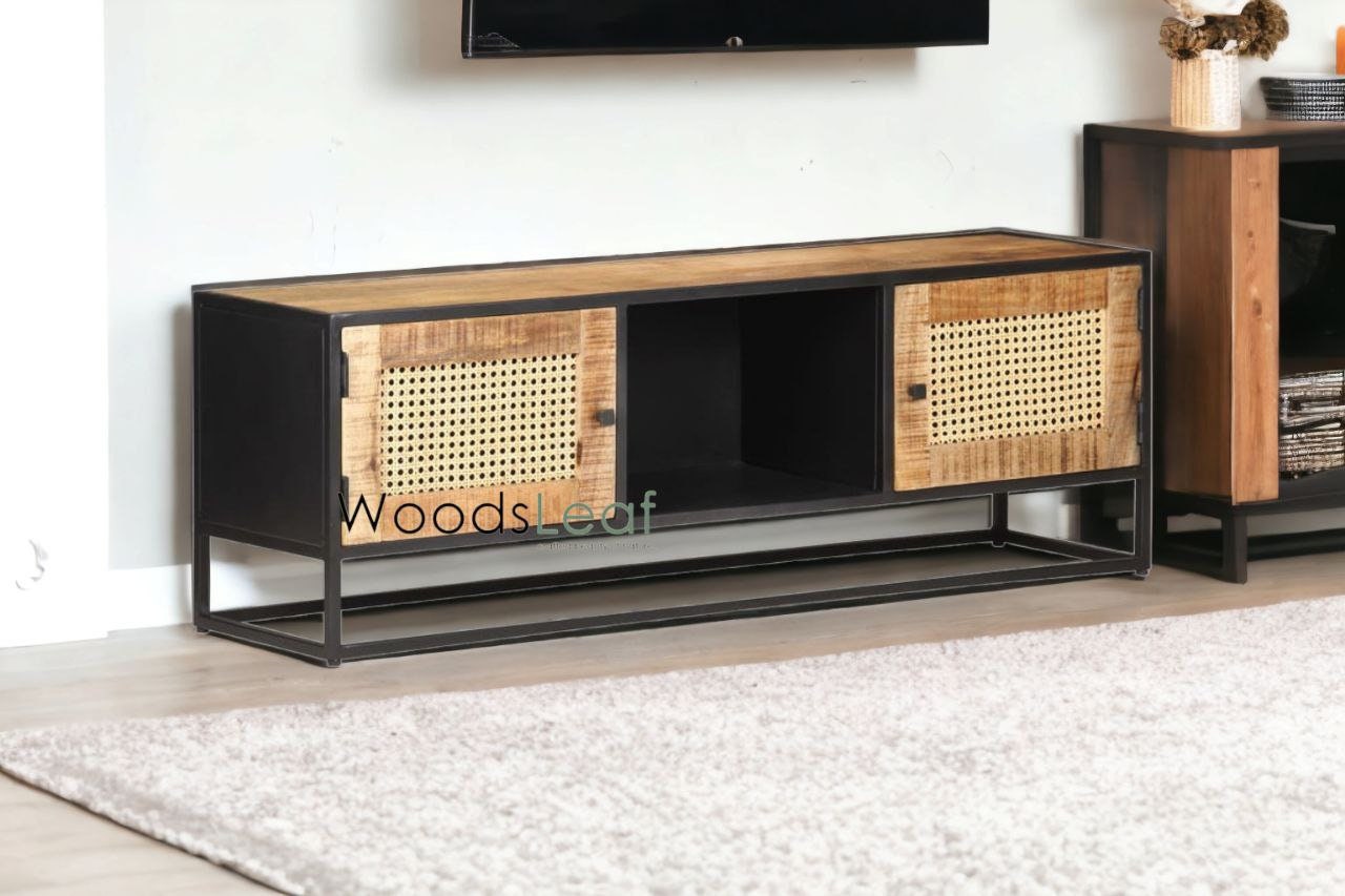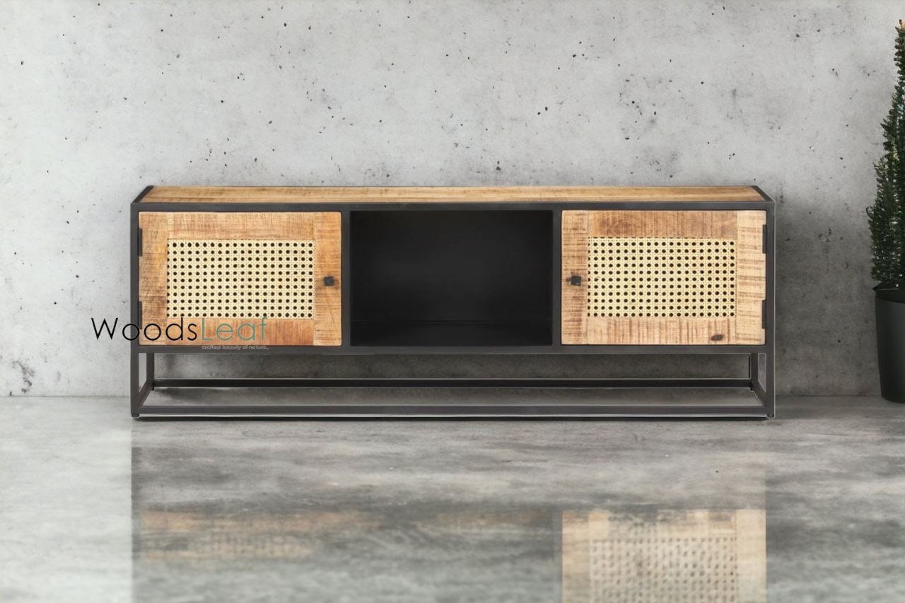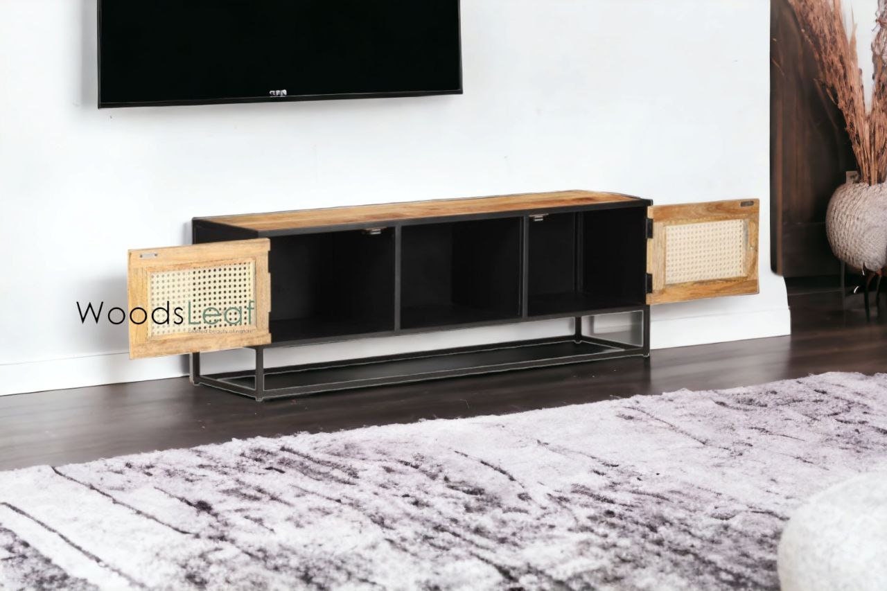 Durable Construction: Crafted from solid mango wood and supported by robust iron legs, this entertainment unit is built to last, ensuring longevity and enduring style.