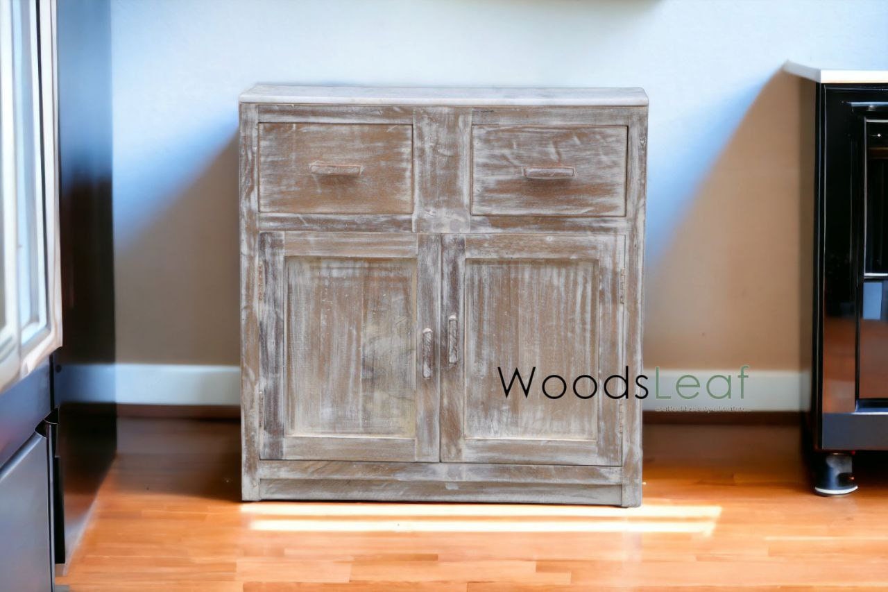 Solid Mango Wood Cabinet with Distressed Finish