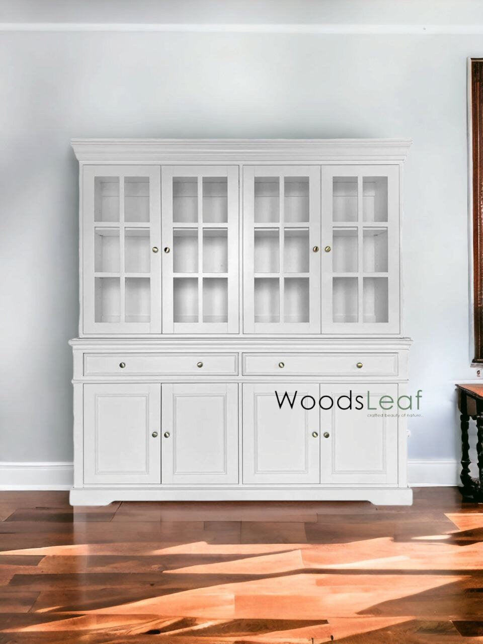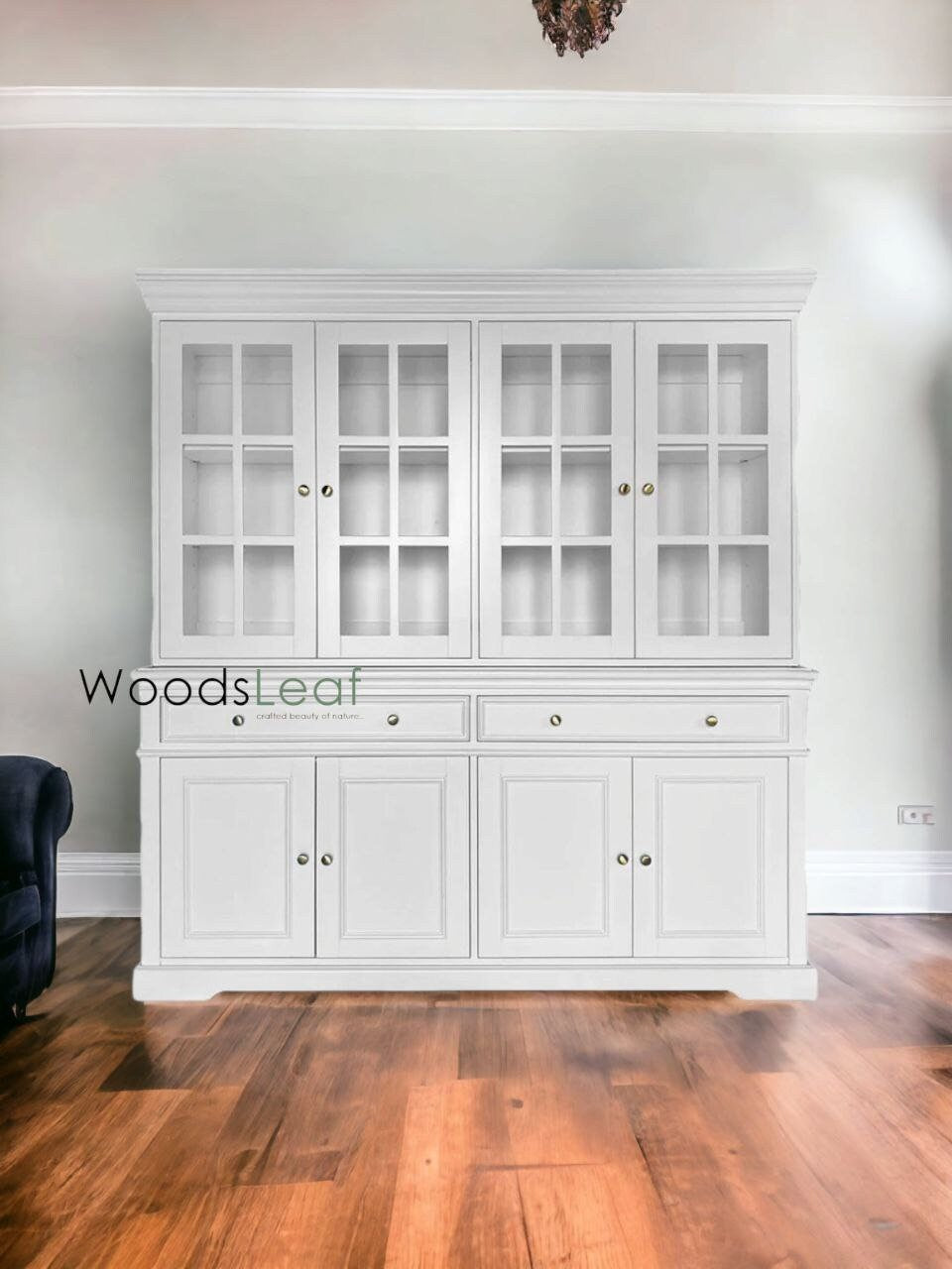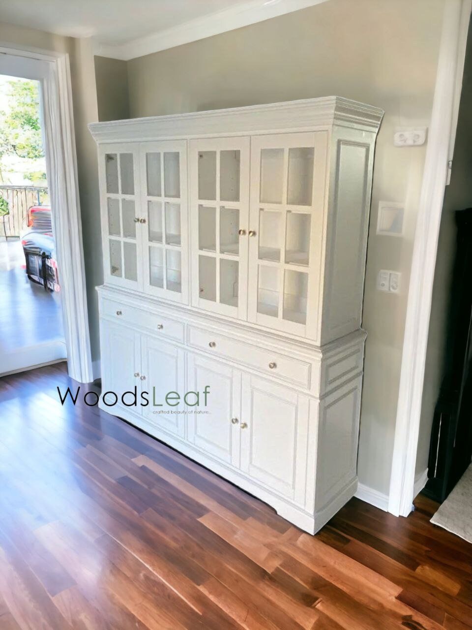 - Doors: Four doors combining wood and glass for a versatile display and storage solution.