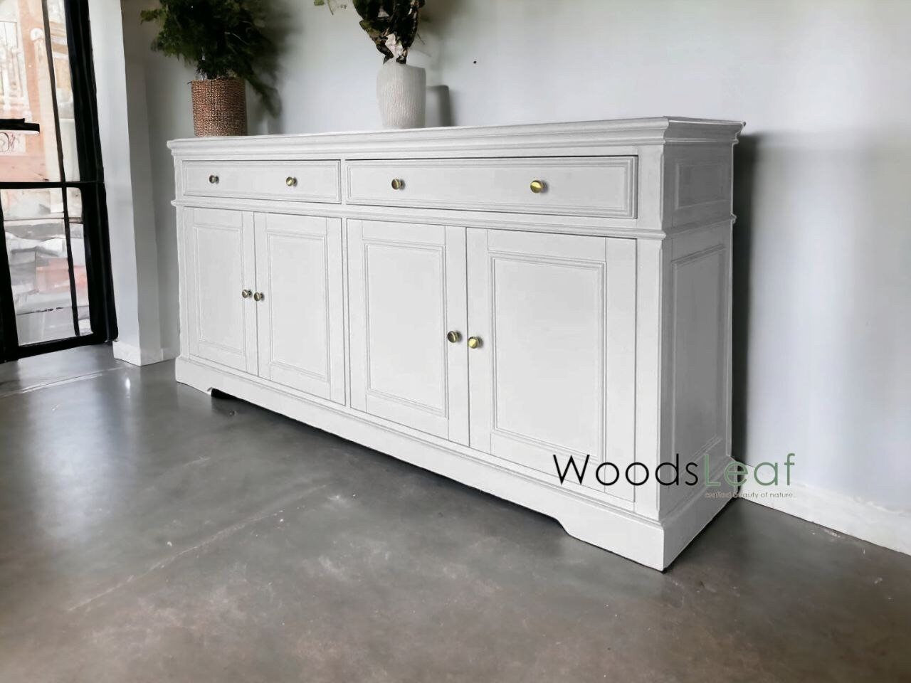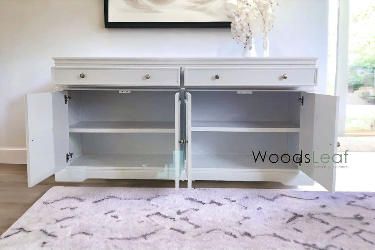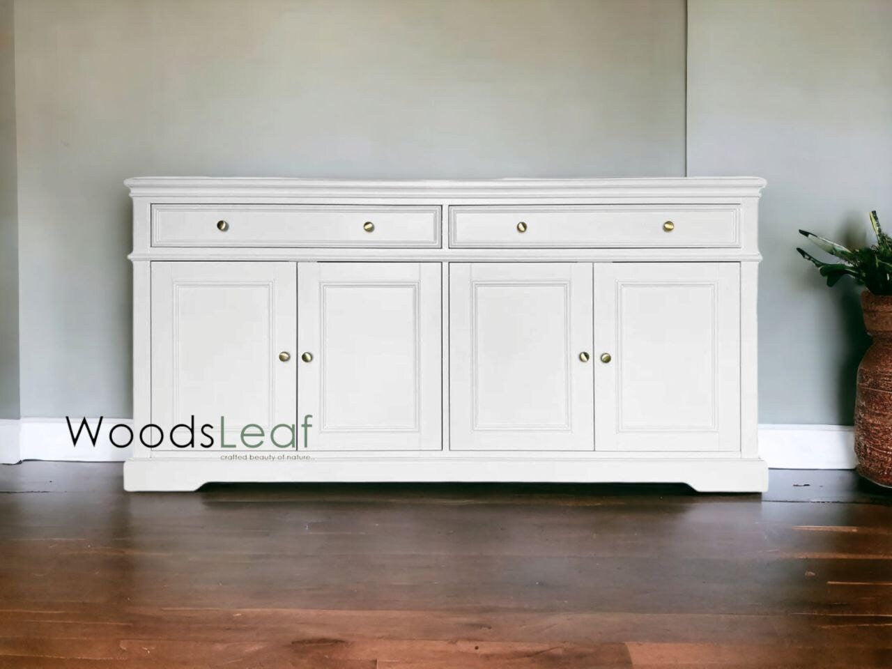 Versatile White Finish: The pristine white finish of this mango wood cabinet radiates a sense of purity and elegance, making it an eye-catching piece that can seamlessly blend with various décor styles—from modern minimalist to classic chic.