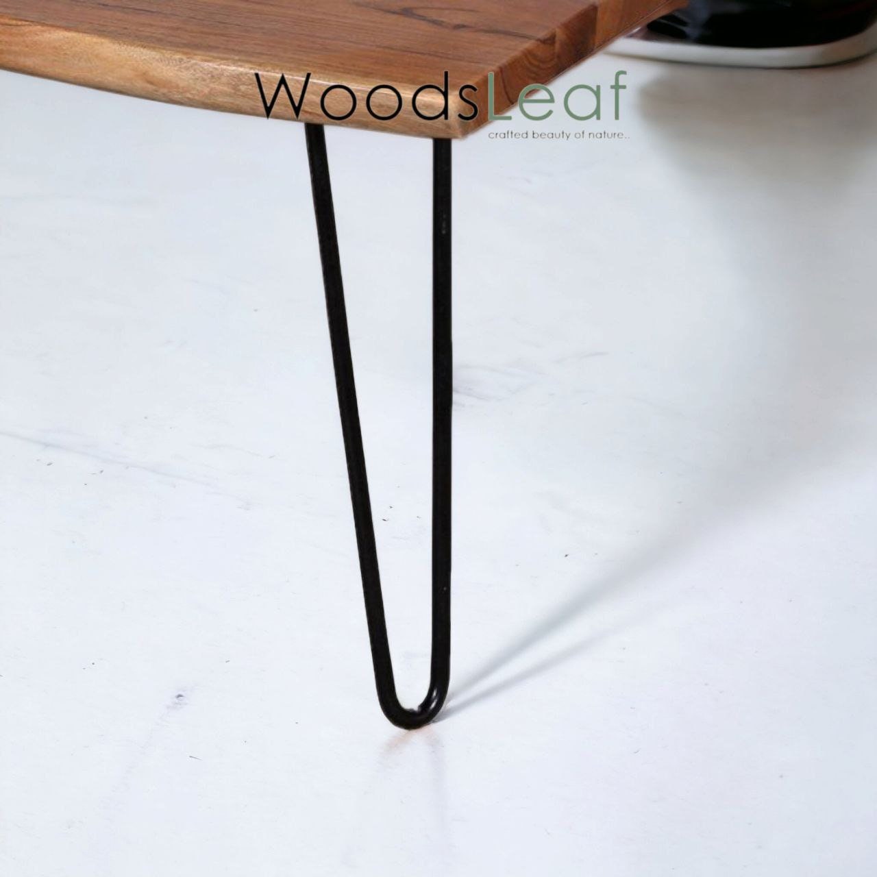 Sturdy Iran Legs with Black Powder-Coated Finish Supporting the tabletop are four sturdy Iran legs, meticulously designed to provide stability and style. These legs feature a sleek black powder-coated finish, offering a striking contrast against the warm brown hue of the tabletop. Not only do these legs add a contemporary flair to the table, but they also ensure longevity and durability, making it a piece you'll enjoy for years to come.